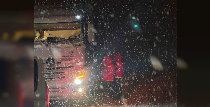 Kızılay ekipleri, kar ve tipi nedeniyle ilerlemekte güçlük çeken bazı araçları iterek sürücülere yardımcı olurken, mahsur kalan vatandaşlara da kek ve meyve suyu dağıttı.