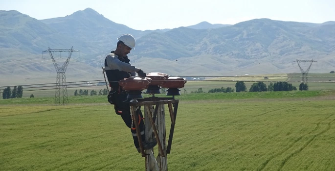 Kentte tarım yapılan bölgelerdeki elektrik direklerini daha güvenli hale getirmek için kuşkonmaz montajı ve orta gerilim izolasyon çalışmaları yürüten ekipler, 15 metre yüksekliğindeki sepetli platform araçlarını kullanarak görev yapıyor. Merkeze 45 kilometre uzaklıktaki Ziyaret köyünde yapılan çalışmaları inceleyen VEDAŞ İl Müdürü Suat Coşar, 15 metre yüksekliğindeki sepetli aracın üzerinde gazetecilere yaptığı açıklamada, yaz aylarında sürüler halinde tarım arazilerine gelen göçmen kuşların elektrik şebekelerine temas ederek elektrik akımına kapılıp telef olduklarını belirtti. Coşar, “Bu nedenle VEDAŞ olarak kuş çarpılmalarını önlemek için kuşların yoğun olarak şebekemize temas ettiği bölgelerde kuşlara hiçbir şekilde zarar vermeyen esnek malzemeden yapılmış ‘kuşkonmaz’ aparatlarının montajı ve orta gerilim izolasyon çalışmaları aralıksız devam ediyor. VEDAŞ olarak zor bir coğrafyada oldukça kritik bir görevi ifa etmekteyiz. Kaliteli ve kesintisiz enerji arzının sağlanması için 7 gün 24 saat esasına göre çalışmaktayız. Yıl içerisindeki yeni tesis yapım çalışmalarımızın yanı sıra işletmede bakım onarım çalışmalarımız da devam etmektedir. Bugün Ziyaret köyünde yapılan bakım çalışmalarındayız. Ziyaret köyünde bulunan yüksek gerilim hatlarımıza ait elektrik direklerinin tepesinde bulunan atlama ve izolatörlere ekiplerimizce giydirme izolasyon çalışması yapılmaktadır. Yapılan bu çalışmayla özellikle direklerin tepesine konan kuşların ve göçmen kuşların telef olması engellenmektedir. Aynı zamanda da bu çarpmalardan dolayı doğabilecek kesintiler de minimize edilmektedir. Bu şekilde daha dirençli bir elektrik akım şebekesi yapmış olup kaliteli ve kesintisiz enerji arzı sağlamaktayız. Burada 4 araç 10 ekiple çalışma yapmaktayız. Ekiplerimiz yaklaşık 15 metre yükseklikte çalışmaktadır. Bu şekilde yılda binlerce direğimize izolasyon çalışması yapmaktayız. Vatandaşlarımıza kaliteli ve kesintisiz enerji ulaştırmak için çaba göstermekteyiz” dedi.