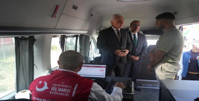 Son teknoloji ile donatılmış mobil araç, göçmenlerin ivedilikle tespit edilmesi, kimlik bilgilerinin alınması ve gerekli işlemlerin yapılması için kullanılacak.