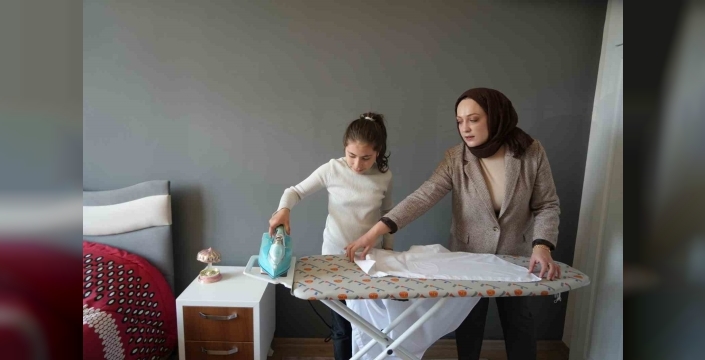 Özel eğitim öğretmeni Funda Göktaş ise okulda banyo, yatak odası, oturma odası ve mutfaktan oluşan, bir evin tüm bölümlerini kapsayacak şekilde tasarlanmış bir uygulama evi bulunduğunu belirterek, "Bu alanlarda, öğrencilerimize gerekli becerileri kazandırmak amacıyla çeşitli etkinlikler gerçekleştirmekteyiz. Bugün yapılan etkinlik kapsamında öğrencilerimiz; ütü yapma, bulaşık yıkama, çamaşır makinesi kullanma ve toz alma gibi günlük yaşamı kolaylaştıran becerileri öğrendiler ve uyguladılar. Uygulama evinde öğrencilerimize öğrettiğimiz bu becerilerin ev ortamında da sürdürülebilmesi için takipler yapmaktayız. Bu süreçte velilerimizden de olumlu geri dönüşler almaktayız" ifadelerini kullandı.