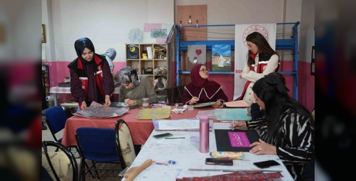 SERHED HABER - Halk Eğitim Merkezi Müdürlüğü bünyesinde yürütülen "Sanata Teşvik ve Sanatla Yaşam" programı kapsamında Aile ve Sosyal Hizmetler İl Müdürlüğü ile Halk Eğitim Merkezi Müdürlüğü iş birliğinde açılan kurs, katılımcılara hem sanatsal hem de ekonomik katkı sağlıyor. Ebru kursuna katılan şehit yakını ve gazi ailelerinden kadınlar, geleneksel Türk sanatlarından biri olan ebruyu öğreniyor. Kursiyerler, eğitim sürecinde hem el becerilerini geliştiriyor hem de ürettikleri eserlerle aile bütçelerine katkıda bulunma imkânı elde ediyor.
