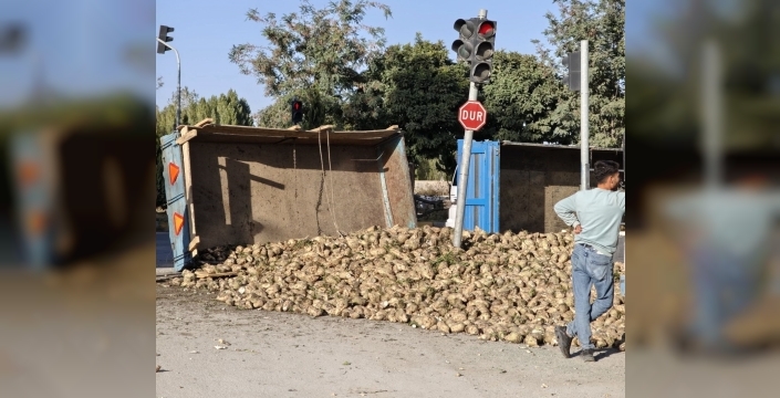 SERHED HABER - Edinilen bilgilere göre, sürücüsünün ismi öğrenilemeyen şeker pancarı yüklü traktör, Muş Sanayi Kavşağı’nda sürücünün direksiyon hâkimiyetini kaybetmesi sonucu devrildi. Kazanın ardından traktörde bulunan pancarlar yola savrulurken, olay yerine polis ekipleri sevk edildi. Herhangi bir can kaybı ya da yaralanma yaşanmayan kazada, trafik akışı bir süre kontrollü olarak sağlandı.