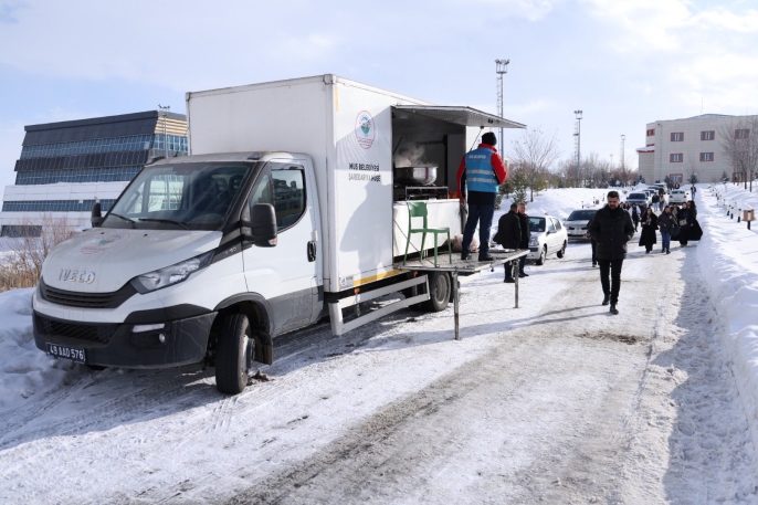 Muş Alparslan Üniversitesi Külliyesi’nde sabahın erken saatlerinden itibaren dersliklerin yolunu tutan öğrenciler, karşılarında Muş Belediyesi’nin mobil ikram aracını buldu. Final haftasının yoğun temposunda kütüphanelerde sabahlayan ve sınavdan sınava koşan gençler, dumanı üstünde tüten çorbalarla hem enerji topladı hem de kısa bir mola verme imkanı buldu.