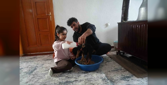 Amcası ile birlikte oğlağın bakımını üstlenen 5 yaşındaki Eliz Serra Güngör, "Bu benim keçim, buna çok iyi bakıyorum. Keçim hastalandı diye evde bakıyorum. Süt veriyorum ve saçını tarıyorum" diye konuştu.