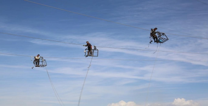 Enerji nakil hattı çalışması yapan firmanın ekip şeflerinden Gürkan Özmen, metrelerce yükseklikte kancaya bağlı sepetin içinde ekmek mücadelesi verdiklerini söyleyerek, “Burada 15 kişilik bir ekip olarak çalışıyoruz. İki gün önce de Ağrı'dan geldik. Orada da 6 günlük bir çalışma yaptık. Şehirlerarası enerjiyi daha aktif hale getirmek, daha verimli elektrik vermek için bu çalışmaları yapıyoruz. Burası düz arazi, burada rüzgâr ve buzlanma çok oluyor. Kesintisiz enerji nakli için tellere ağırlık takıyoruz. Vardiya sistemiyle çalışıyoruz, öğlene kadar bir ekip öğleden sonra bir ekip çalışıyoruz. Yoruldukça dinleniyoruz, işimiz zor. Ekmeğimizin peşindeyiz. Ekmeğimiz bir kancanın ucunda. Önce emniyetimizi alıyoruz sonra çalışıyoruz. Herkes edebildiği kadar çalışmaya çalışıyor. Paramızı helal yoldan kazanmaya çalışıyoruz. Burası düz arazi olduğu için yerden yüksekliği 25-30 metre, bazen dağlık ve vadilerde çalışıyoruz ve yükseklik 60-70 metreyi buluyor. O zaman biraz zor ve korkutucu oluyor. Ama halkımız için çalışıyoruz. Halkımızın daha iyi elektrik alabilmeleri için çalışıyoruz. Yerden 50 metre yükseklikte sepetin için de ekmek mücadelesi veriyoruz” dedi.