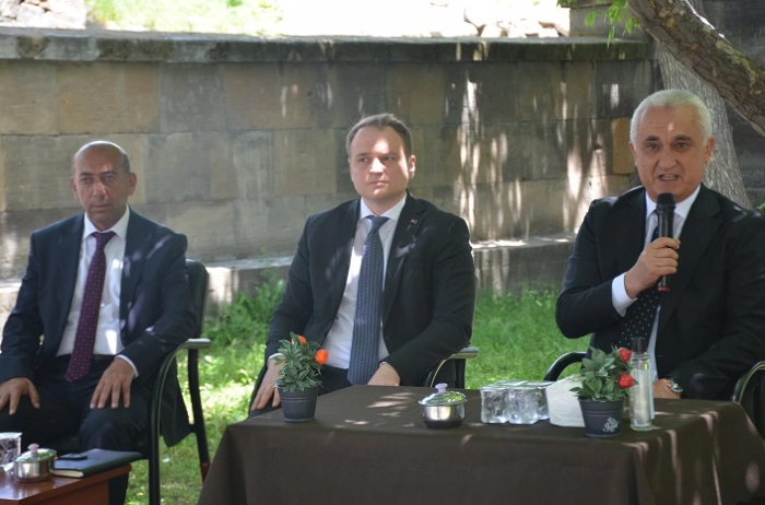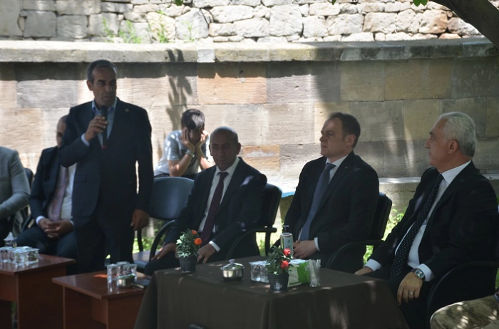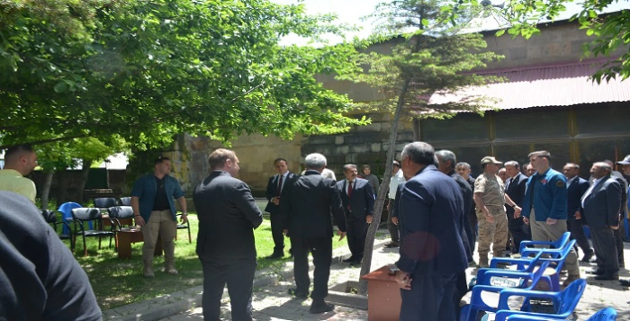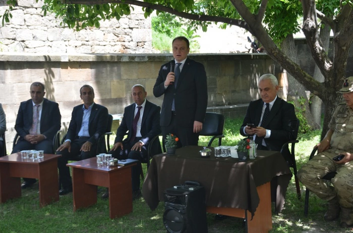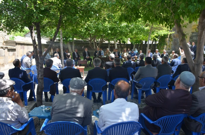 Daha sonra Şeyh Abdülmelik camisi bahçesinde yapılan muhtarlar toplantısının açılış konuşmasını yapan Bulanık Kaymakamı Ömer Övünç Koşansu, tarihi kadim bir köyde Vali Bey ve heyetini ağırlamaktan onur duyduğunu belirtti.