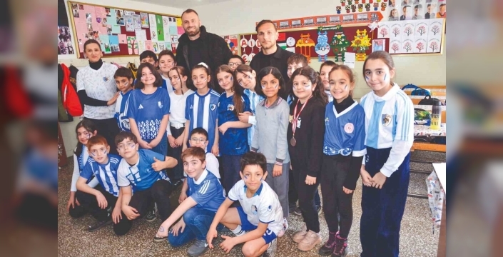 Çocuklarla bir anda sarmaş dolaş olan Kaptan Yumlu ve Sefa Akgün daha sonra giyilen formaları imzaladı ve spor salonunda üç ve dördüncü sınıflarla bir araya geldi. Çocukların birbirinden ilginç sorularını yanıtlayan Kaptan Yumlu ve Akgün, öğretmen ve öğrencilerle bol bol fotoğraf çektirerek forma imzaladı.