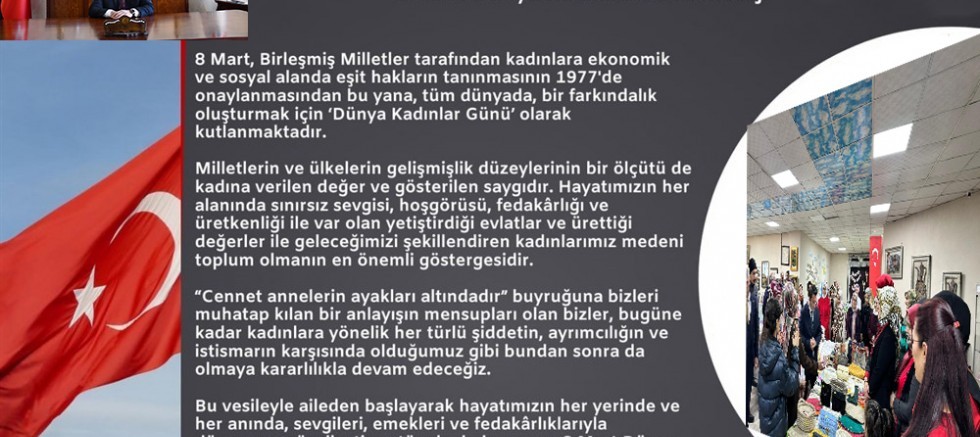Milletlerin ve ülkelerin gelişmişlik düzeylerinin bir ölçütü de kadına verilen değer ve gösterilen saygıdır. Hayatımızın her alanında sınırsız sevgisi, hoşgörüsü, fedakârlığı ve üretkenliği ile var olan yetiştirdiği evlatlar ve ürettiği değerler ile geleceğimizi şekillendiren kadınlar medeni toplum olmanın en önemli göstergesidir.