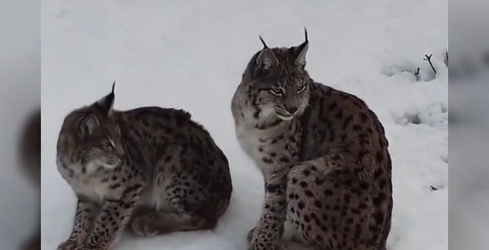 Nesli tükenme tehlikesi altında olan, kedigiller familyasına ait bir tür olan ve ormanın hayaleti olarak bilinen vaşak, çift olarak Erzincan’ın Refahiye ilçesine bağlı Kırkbulak köyü civarında karlı arazide Ozan Türkmen tarafından drone ile görüntülendi.