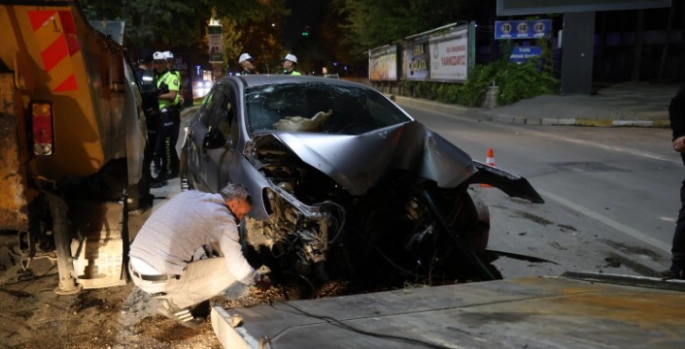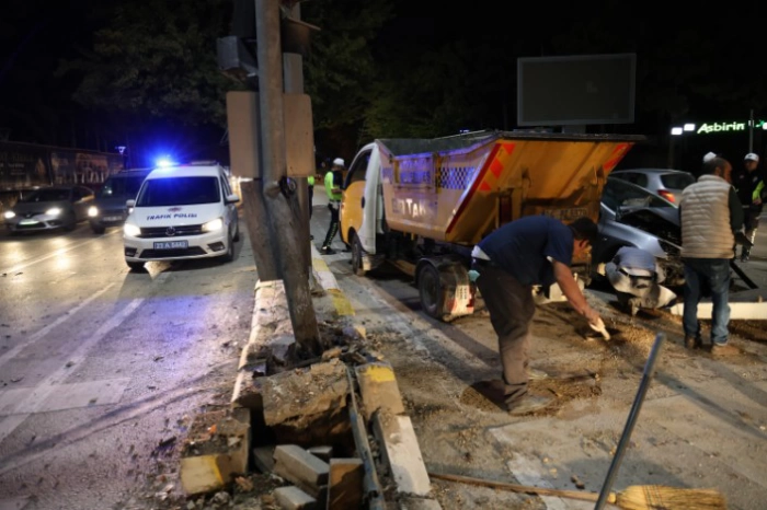Polis ekipleri olay yerinde kazayla ilgili inceleme yaptı.