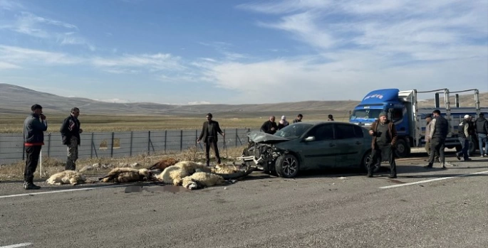 Kazada, 20 küçükbaş hayvan telef oldu, otomobilde hasar oluştu.