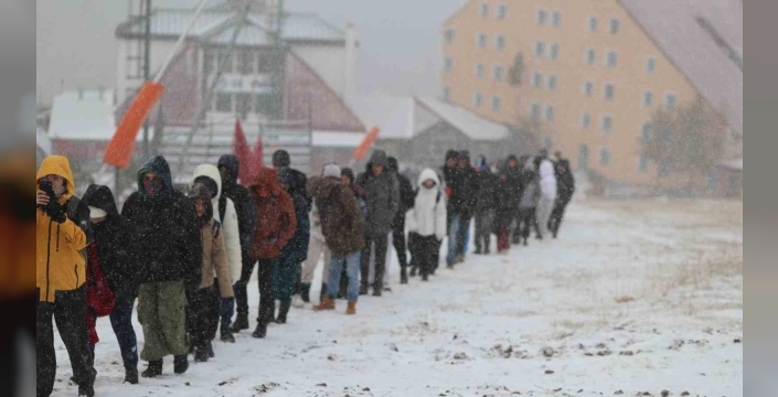 Yağış altında Palandöken’den inen öğrencilere Erzurum Büyükşehir Belediyesi iştiraklerinden 3200 Ejder A.Ş. sıcak çorba ikramında bulundu.