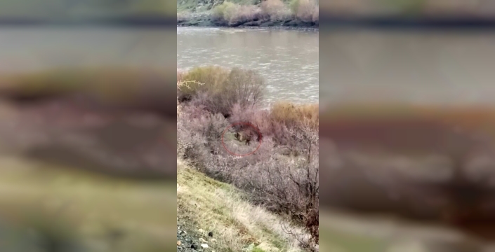 SERHED HABER- Elazığ’ın Palu ilçesine bağlı Beyhan Kasabası yakınlarında Murat Nehri kıyısına balık tutmaya giden bir balıkçı, su kenarında ayı ve yavrusuyla karşılaştı.