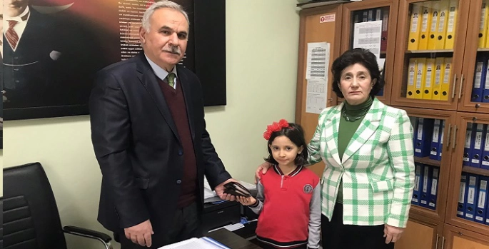 Olay, Gazi İlkokulunda düzenlenen değerler eğitimi semineri konferans salonunda gerçekleşti. Gazi İlkokulu öğrencisi Defne Akkaya, yerde içerisinde 7 bin TL'nin üzerinde nakit para ve kredi kartlarıyla birlikte kişisel eşyalar bulunan cüzdan buldu. Akkaya, durumu hemen rehber öğretmeni Ayten Güven'e bildirdi. Öğrencisinin duyarlı davranışını takdir eden Güven, birlikte okul yönetimine gitmek üzere cüzdanı okul müdür yardımcısı Bilal Dağtekin'e teslim ettiler.