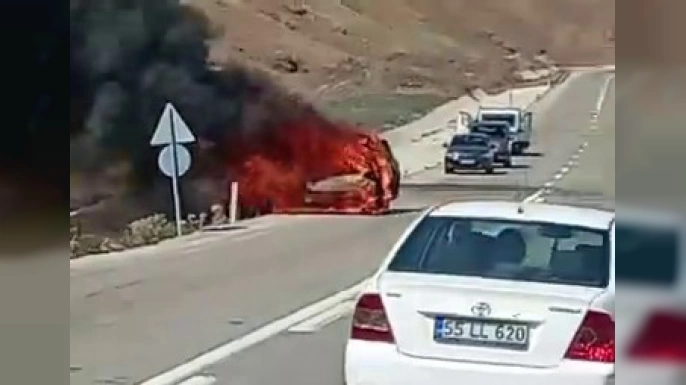 SERHED HABER - Tekman ilçesinde ana yol üzerinde park halinde bulunan bir otomobil henüz bilinmeyen nedenle alev aldı.