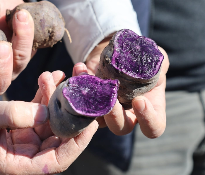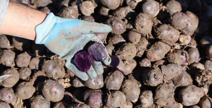 Karbonhidrat, potasyum, C vitamini, folik asit ve demir kaynağı olan mor patatesin ilk hasadı tamamlandı.