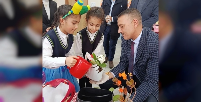 Programın en renkli anları ise çiçek dikimi atölyesinde yaşandı. İlçe Milli Eğitim Müdürü Yüksel Zorlu ve Şube Müdürü Mecit Irmak, öğrencilerle birlikte geri dönüşümlü saksılara fidan dikerek can suyu verdi.