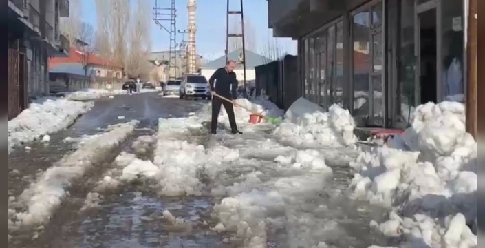 Yüksek rakımlı bölgelerde köylüler, koyunlarının yem ihtiyacını karşılamak için yoğun çaba harcarken, bazıları yolları ve ev çevresini kar birikintilerinden temizleyerek kullanıma hazır hâle getiriyor.