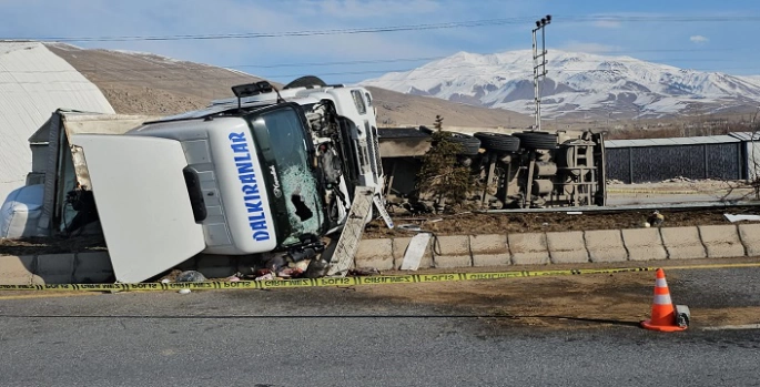 Tırın yaralanan sürücüsü ambulansla Adilcevaz Onkoloji Hastanesine kaldırılırken dorsesinden hammaddenin düşmesiyle yol trafiğe kapatıldı.