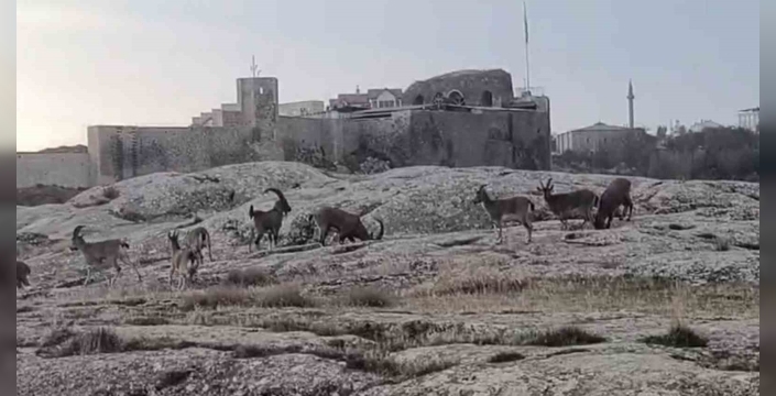 Elazığ’ın tarihi Harput Mahallesi’nde sabahın erken saatlerinde dağ keçileri görüntülendi. Koruma altında bulunan ve avlanması yasak olan dağ keçilerinin Harput Kalesi’nin eteklerinde otlandığı görüldü.