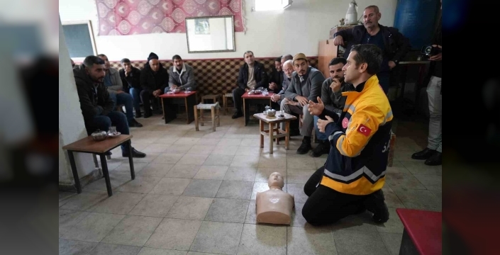 SERHED HABER - Zorlu coğrafi şartlar nedeniyle ambulans ekiplerinin ulaşmasının zaman aldığı yerleşimlerde başlatılan "Köylere ilk yardım farkındalık eğitimi" projesi kapsamında sağlık çalışanları, köyleri tek tek gezerek vatandaşlara temel yaşam desteği, havayolu tıkanıklığına müdahale ve kanama kontrolünü uygulamalı anlattı.