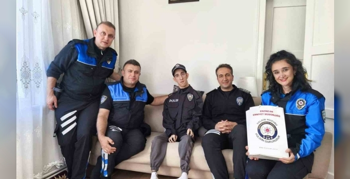 Aileye ziyarette bulunan ekipler, Samet’e polis üniforması ve çeşitli hediyeler verdi.