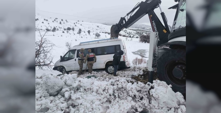 Bu çerçevede Karakoçan’a bağlı Akpınar köyü yakınlarında A.A. idaresindeki minibüs, yoğun kar yağışından dolayı kayarak şarampole sürüklendi.