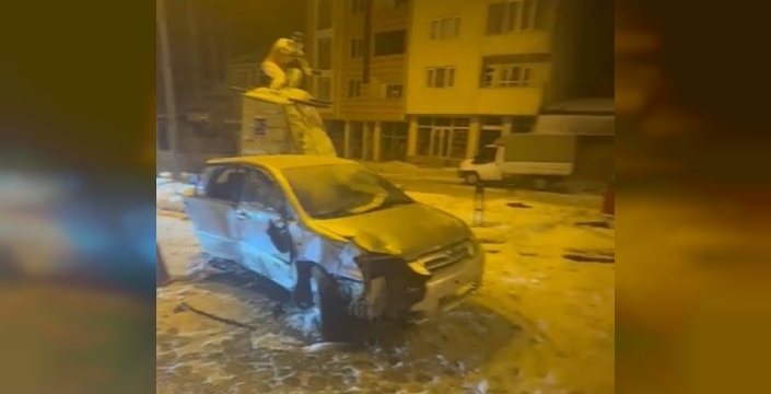 Sarıkamış ilçesine seyir halindeki otomobil sürücüsünün direksiyon hakimiyetini kaybetmesiyle yoldan çıkarak ilçe girişinde bulunan kayakçı heykeline çarptı. Kaza da otomobilde bulunan 3 kişi yaralandı.