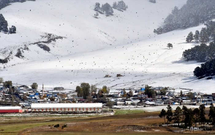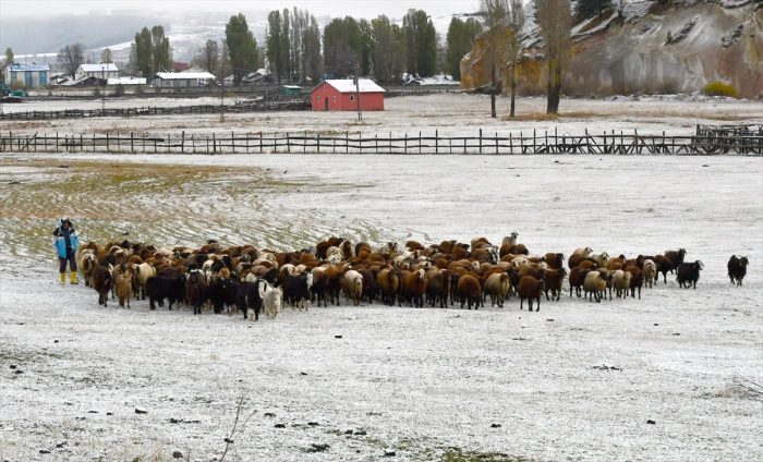 Kars'ta da dün başlayan kar, yüksek rakımlı kesimlerde etkisini sürdürdü.