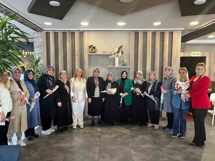 Yemek programında şehit yakınlarına çiçek hediye edildi.