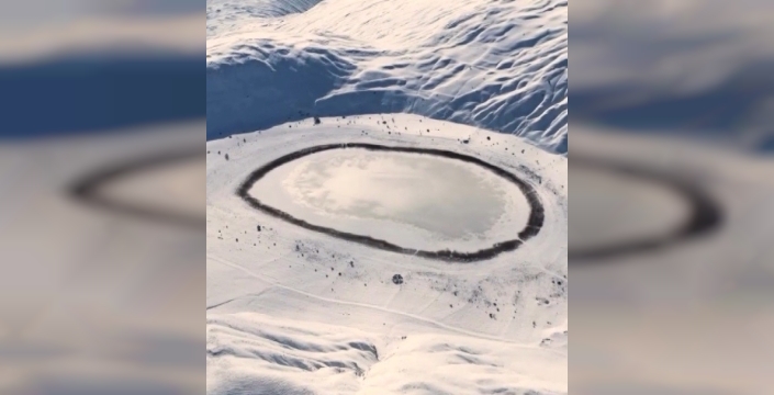 SERHED HABER- İliç Belediye Başkanı Mehmet Elçi’nin paylaştığı görüntüler ilgi görürken, yaklaşık 350 metre çapındaki ve jips erimesiyle oluşan göl, kış mevsiminde farklı bir görünüme büründü.