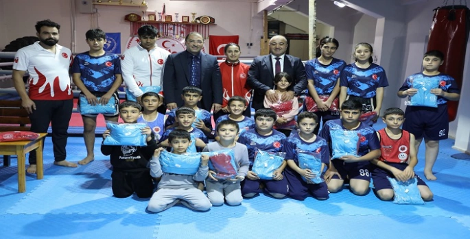SERHED HABER - Gençlik ve Spor Bakanlığı tarafından sporculara gönderilen eşofman takımları ve tişörtler; Ağrı Vali Yardımcıları Ahmet Raşit Orhan, Recep Aydın, Gençlik ve Spor İl Müdürü Ahmet Çelebi ve Spor Hizmetleri Müdürü Cemil Budak'ın katıldığı antrenman ziyaretlerinde sporculara dağıtıldı.