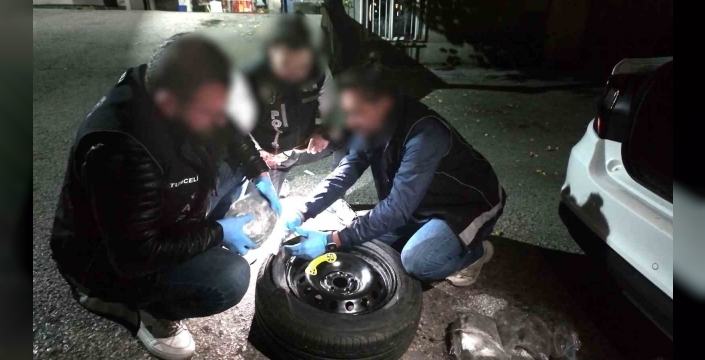 Narkotik madde arama köpeği Luna ile yapılan aramada araç bagajındaki yedek lastik içerisine zulalanmış vaziyette; 7 parça halinde toplamda 3 kilo 737 gram esrar maddesi ele geçirildi. Gözaltına alınan araç sürücüsü B.A. ve yanında bulunan A.Y.’nın işlemlerinin ardından adliyeye sevk edildiği bildirildi.