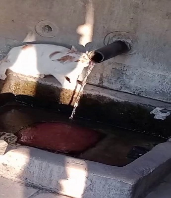 Elazığ’da bulunan tarihi Harput Mahallesindeki bir çeşmenin önüne gelen sokak kedisi susuzluğunu gidermek istedi. Çeşmenin başına gelip kana kana su içen kediyi gören çevredeki bir vatandaş, cep telefonu ile hayvanın sevimli hallerini kaydetmeye başladı. Sokak kedisi, susuzluğunu giderdikten sonra sessizce bölgeden ayrıldı. Bidonlarını su doldurmak için orada bulunan vatandaşların kedinin su içmesini beklemesi, alkış topladı.