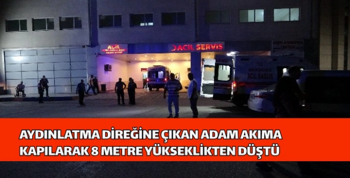 Olay, 21,30 sıralarında Yazıhan İlçesi Bahçelievler Mahallesi’nde meydana geldi. İddiaya göre, E.U. (33) evinin bahçesinde bulunan aydınlatma direğine tamirat yapmak için çıktı. Bu sırada akıma kapılan E.U. yaklaşık 8 metre yükseklikten aşağı düşerek ağır yaralandı. Yakınlarının ihbarı üzerine Malatya Eğitim ve Araştırma Hastanesi’ne kaldırılan E.U. burada tedavi altına alındı.
