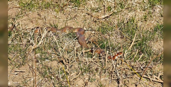 SERHED HABER - Arkadaşlarıyla birlikte kırsal bölgede yürüyüş yapan Bütün, yürüyüş sırasında arazide hareket eden yılanı fark etti. Soğukkanlı bir şekilde yaklaşan gezgin, cep telefonu ile hem yılanın videosunu hem de fotoğraflarını çekmeyi başardı.