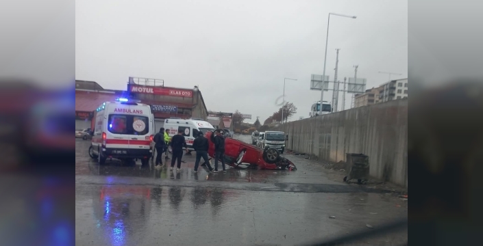 Kaza anı, sanayi bölgesindeki bir iş yerinin güvenlik kamerasına saniye saniye yansıdı. Kazada yaralanan sürücü ve yanındaki bir kişi, olay yerine sevk edilen sağlık ekipleri tarafından hastaneye kaldırıldı.