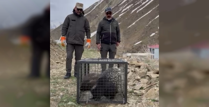 Hakkari’nin Yüksekova ilçesinde yaralı halde bulunan Hint oklu kirpi, Van’daki tedavisinin tamamlanmasının ardından doğal yaşam alanına bırakıldı.