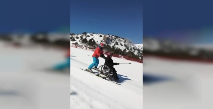 Tekerlekli sandalyeyle kayak yaparak hayalini gerçekleştirdi