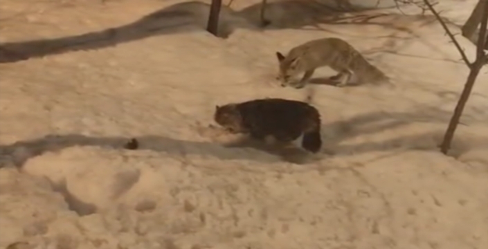 Yiyecek arayan bir tilki ile bir kedinin aynı anda yan yana beslenmesi, köylüler tarafından cep telefonu kamerasıyla görüntülendi. Görüntülerde, tilki ile kedinin birbirlerine herhangi bir saldırıda bulunmadan sakin bir şekilde yiyecek yedikleri görüldü. Normal şartlarda doğada karşı karşıya gelmesi zor olan iki hayvanın bu uyumlu davranışı dikkat çekti.