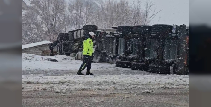 SERHED HABER- Kaza, Bingöl- Karlıova karakolu Elmalı köyü yakınlarında meydana geldi. Edinilen bilgiye göre, ilçeye doğal gaz sevkiyatı yapan 34 NSF 020 plakalı tır, yoğun kar yağışı nedeniyle yoldan çıkarak devrildi.