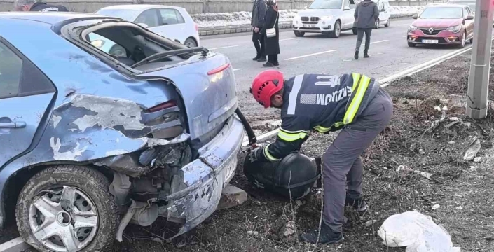 SERHED HABER- .Edinilen bilgilere göre ticari araç ile otomobil kaza yaptı. Çarpmanın etkisiyle otomobil kontrolden çıkarak orta refüje savruldu ve aydınlatma direğini devirdi.