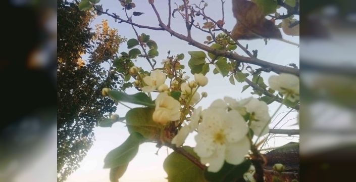 Köyde çiftçilik yaptıklarını dile getiren Mustafa Alptekin, "Geçen hafta topladığımız armut ağacının bu hafta çiçek açtığını gördük. Şaşkınlığımızı gizlemedik" dedi.