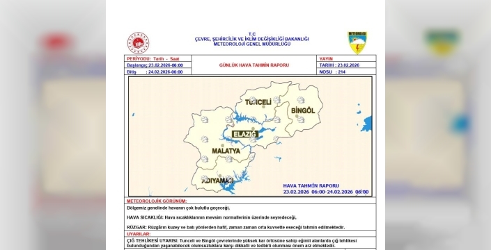 Meteoroloji 13. Bölge Müdürlüğü tarafından yapılan açıklamada, "Tunceli ve Bingöl çevrelerinin yüksek kar örtüsüne sahip eğimli alanlarda çığ tehlikesi bulunduğundan yaşanabilecek olumsuzluklara karşı dikkatli ve tedbirli olunması gerekmektedir" denildi.