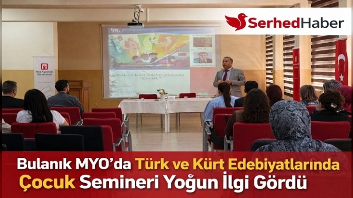 SERHED HABER- Muş Alparslan Üniversitesi Bulanık Meslek Yüksekokulu tarafından düzenlenen “Türk ve Kürt Edebiyatlarında Çocuk” başlıklı seminer, Bulanık Meslek Yüksekokulu Konferans Salonu’nda yoğun katılımla gerçekleştirildi.