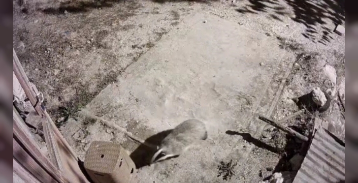 Görüntülerde bal porsuğu ile sansar yiyecek aradıktan sonra gözden kayboldu.