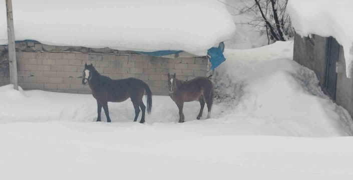 Yoğun kar yağışı ve tipi nedeniyle yolu ulaşıma kapalı olan köye ulaşmak için iş makineleriyle yol açma çalışması başlatıldı. Uzun süren çalışmaların ardından köye ulaşan ekipler, zorlu kış şartlarında bitkin halde buldukları atları güvenli bölgeye tahliye etti.