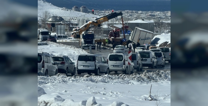 Van’ın Tuşba ilçesinde meydana gelen tır kazasında uzun araç kuyruğu oluştu.