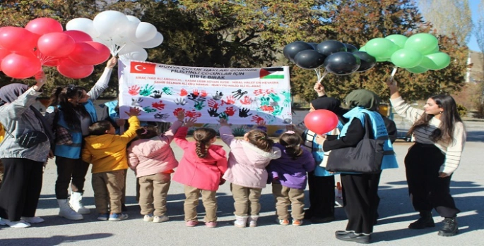 SERHED HABER - Etkinlikte, üniversite öğrencileri Filistin bayrağının renklerinde balonlar ve boyalarla görsel bir farkındalık çalışması yaptı. Yaylabaşı İlkokulu öğrencileri, hazırladıkları posterlerle Filistinli çocukların yaşadığı trajedilere dikkat çekti. Çocuklar, posterlerinde Filistin’deki çatışmalarda hayatını kaybeden çocukları anarak, eşit haklar ve özgürlük içinde bir dünya mesajı verdi.