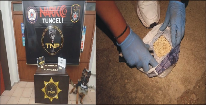 SERHED HABER -Tunceli Emniyet Müdürlüğü Narkotik Suçlarla Mücadele Şube Müdürlüğü ekipleri, Asena Projesi kapsamında Pertek uygulama noktasında saat 02.50 sıralarında şok uygulama gerçekleştirdi. Uygulamada, feribottan kontrol noktasına gelen araçta detaylı arama yapıldı. Luna isimli narkotik madde arama köpeğinin tepkisi üzerine araçta bulunan şahsın detaylı üst araması gerçekleştirildi. Aramada, şahsın iç çamaşırında beyaz renkli şeffaf poşet içerisinde toplam 500 extacy hap olduğu değerlendirilen uyuşturucu madde ele geçirildi.